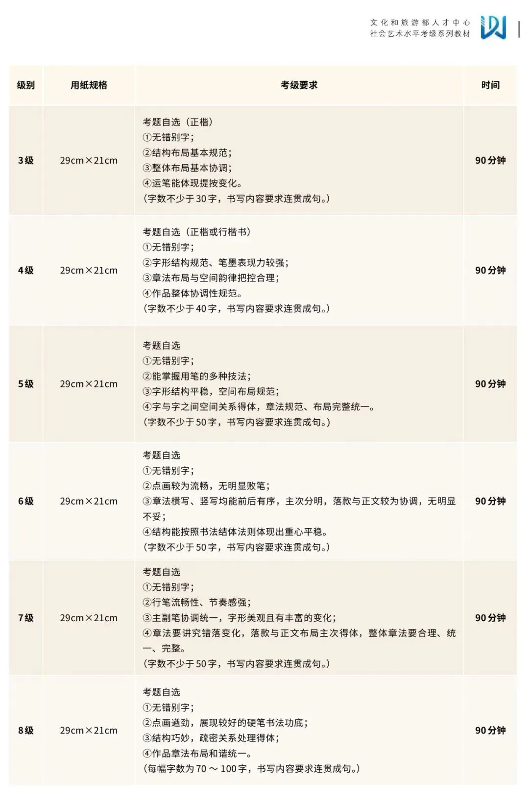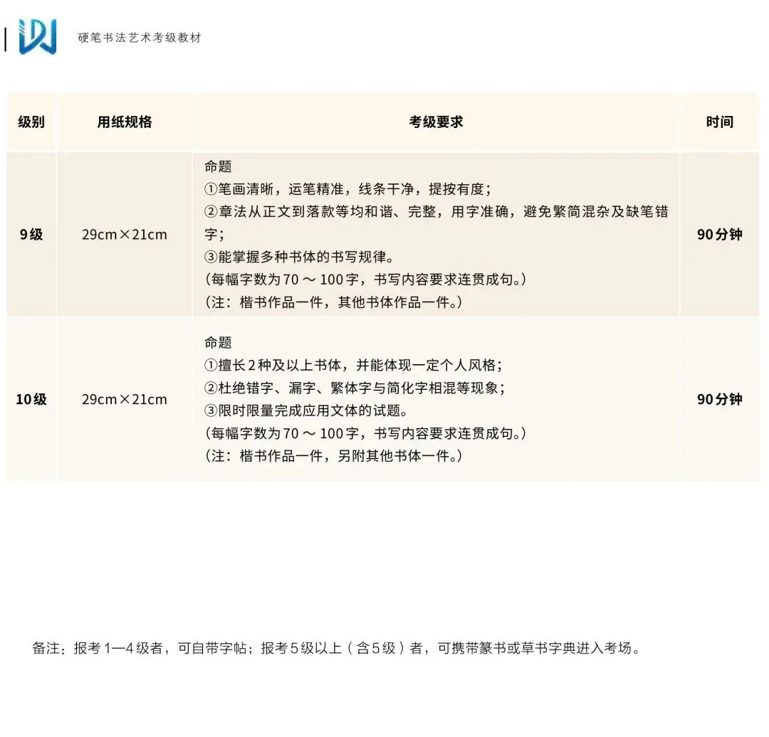 >文化和旅游部人才中心丨社会艺术水平考试—【硬笔书法】考级纲要