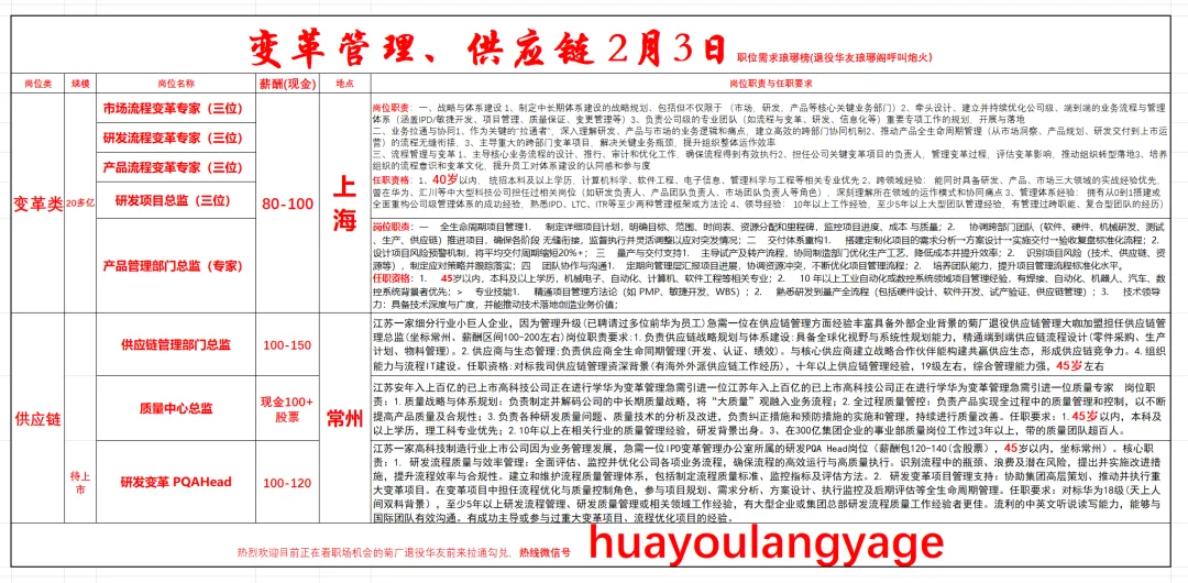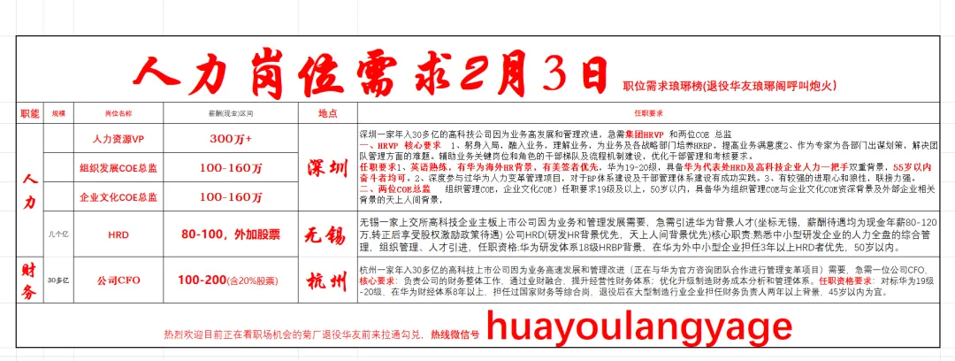 希望我司退役员工既具备华为先进管理经验又掌握如何适应大多数企业的生存技巧,职业生涯更加稳健些。