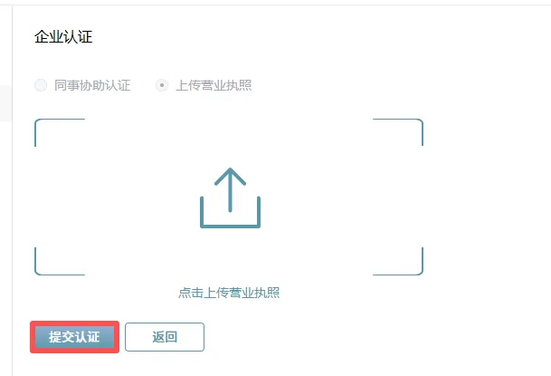 企业第一位认证者需要上传营业执照,其他成员选择同事辅助认证即可