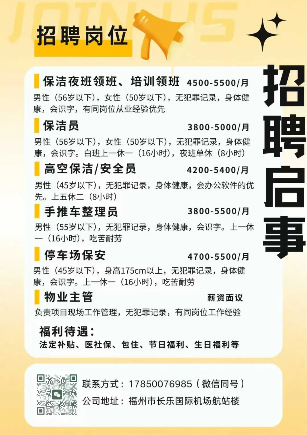 55岁以内,第一个月4000,转正后4200不包吃住,月休两天,福清本地人优先