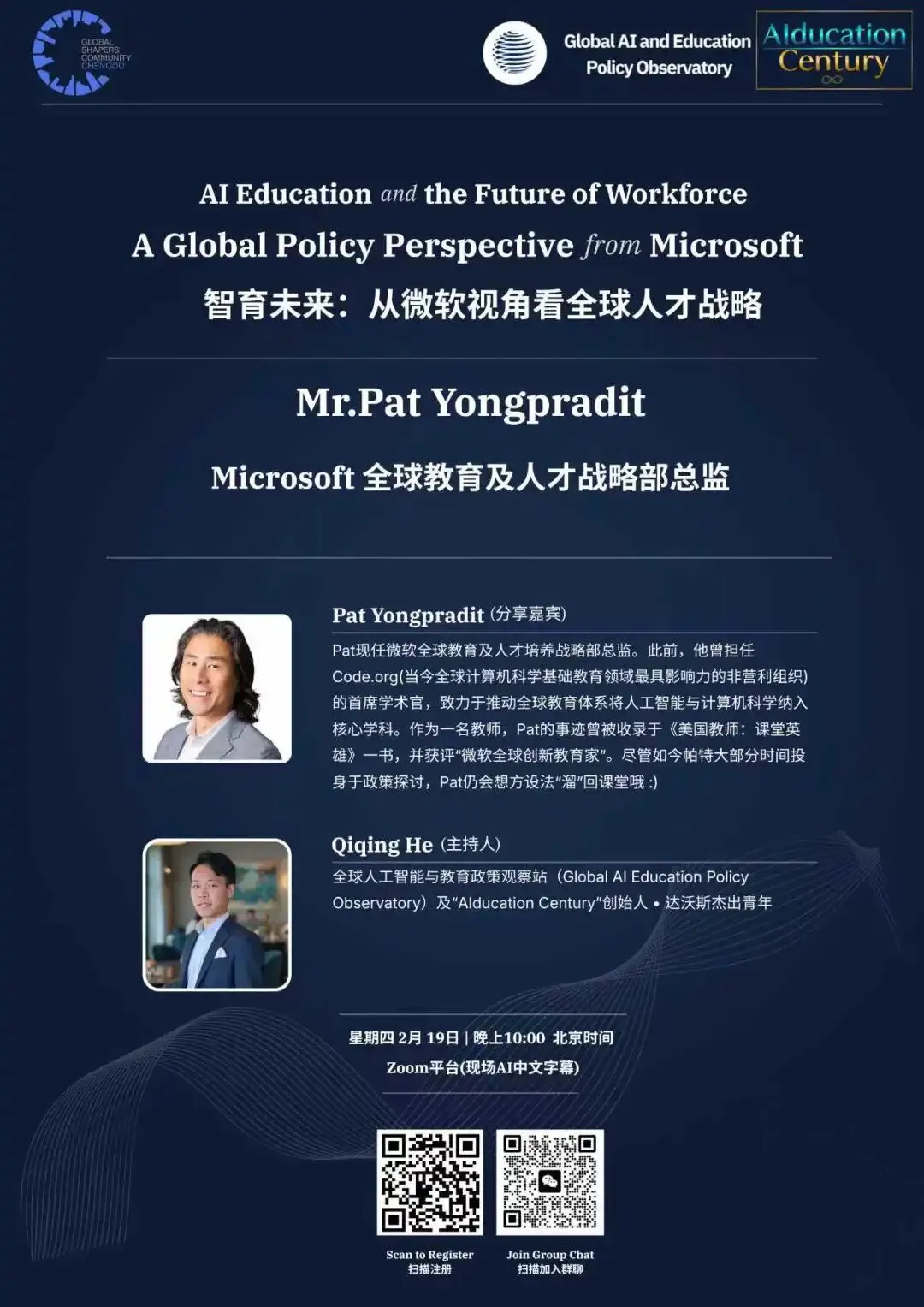 微软全球教育及人才战略总监Mr.Pat Yongpradit 2026年2月19日与您分享