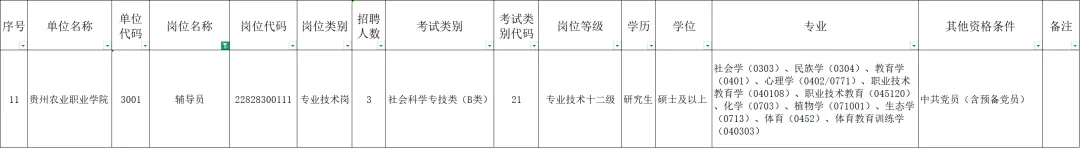 1. 贵州农业职业学院2026年公开招聘事业单位工作人员岗位及要求一览表.xlsx