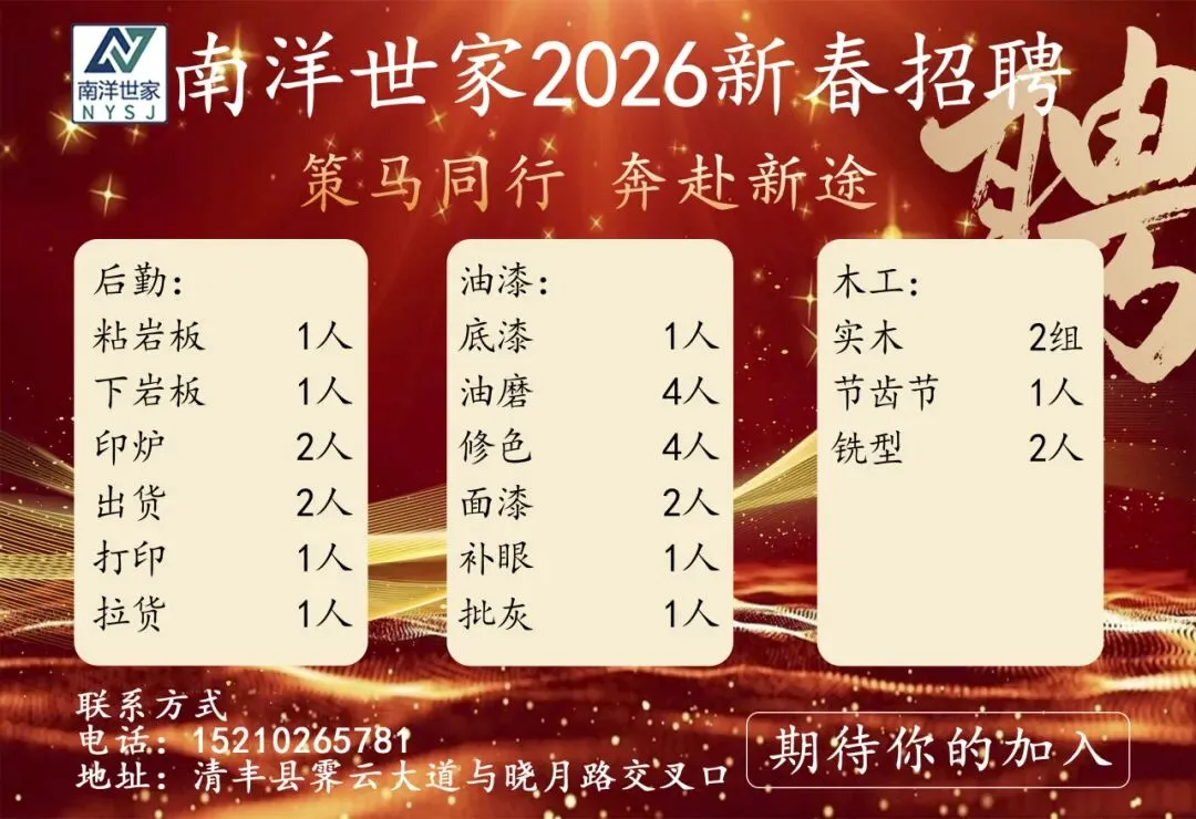 >南洋世家家具招聘啦