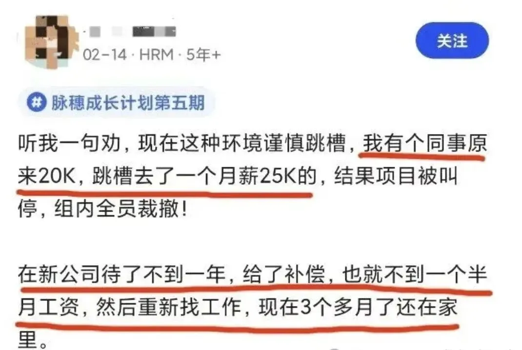 这两年的离职率虽然下降了,但跳槽还是职场最常见的行为之一,总有不喜欢的人和事,驱动着离职。有位HR网友分享了一个跳槽的故事:同事原来月薪2w,跳槽去了2.5w的公司,结果项目被叫停,组内全员裁撤,现在3个多月了还在家里…