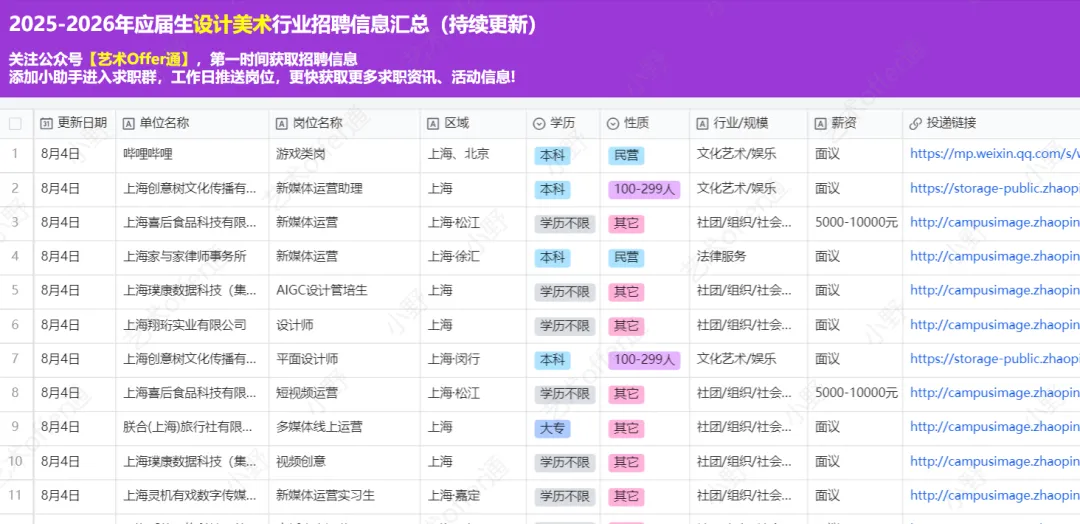 -适合人群:艺术美学相关专业在校生、应届生、各阶段社会从业人员,了解最新就业资讯、招聘信息。