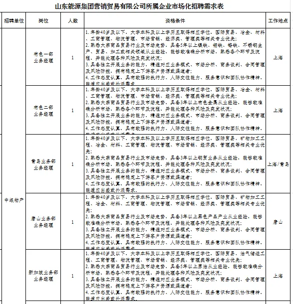 山东能源集团营销贸易有限公司(简称营贸公司)成立于2022年1月,主要负责煤炭营销、物流贸易、政府煤炭储备运营。业务范围涉及能源商品、基础原材料、农副产品三大类别,贸易品种涵盖煤炭、焦炭、有色金属、钢材、矿石、油品等30余种,拥有上下游合作方600余家、重点客户100余家,市场范围覆盖京津鲁冀、晋陕蒙、华南、西南、中国香港、日韩、新加坡等境内外多个区域。