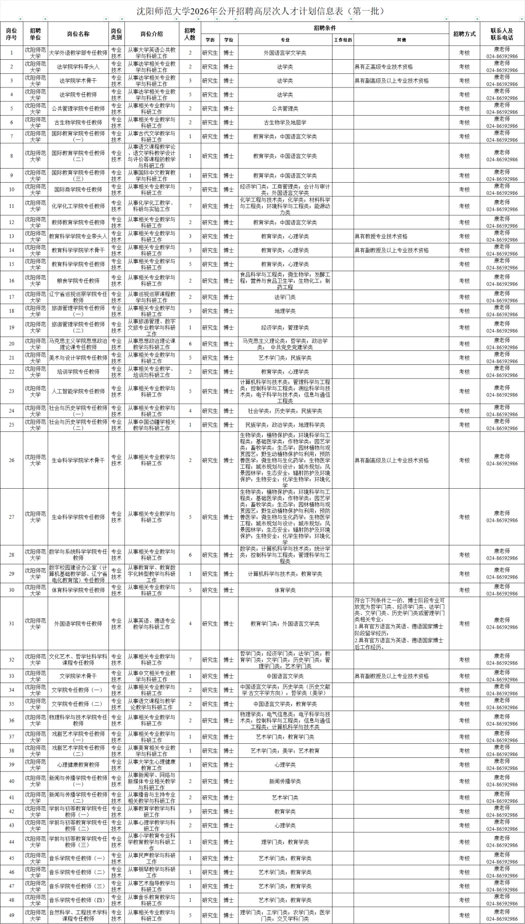 附件:《沈阳师范大学2026年公开招聘高层次人才计划信息表(第一批)》
