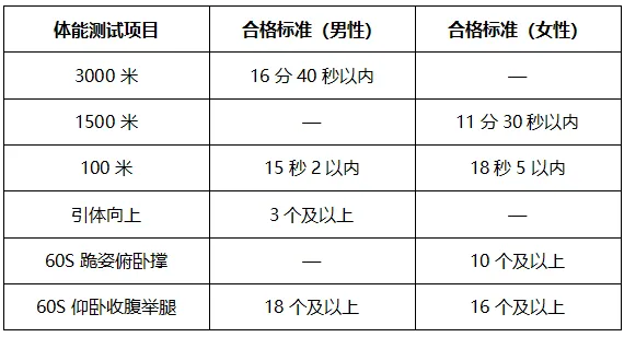 五、体能测试要求