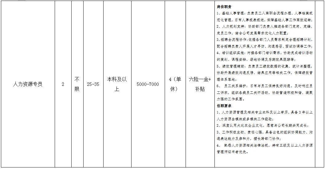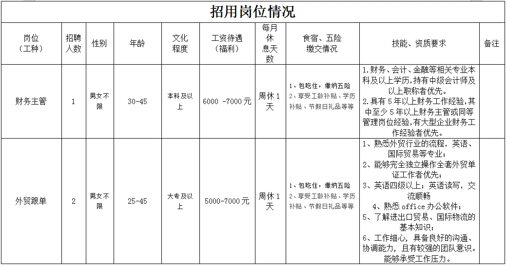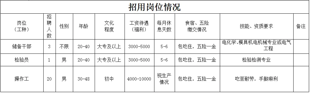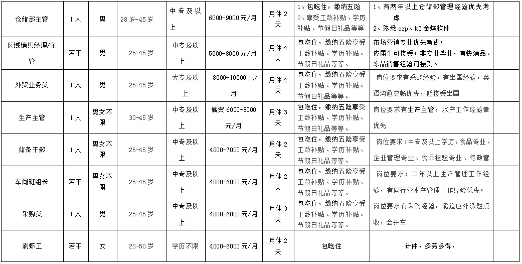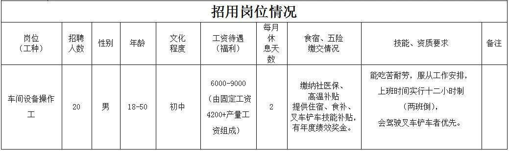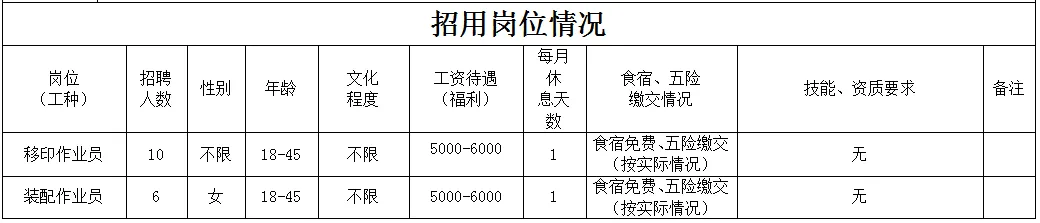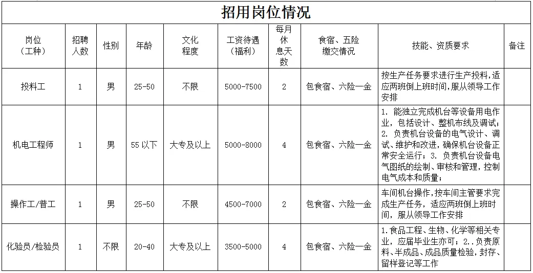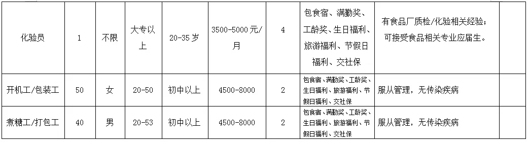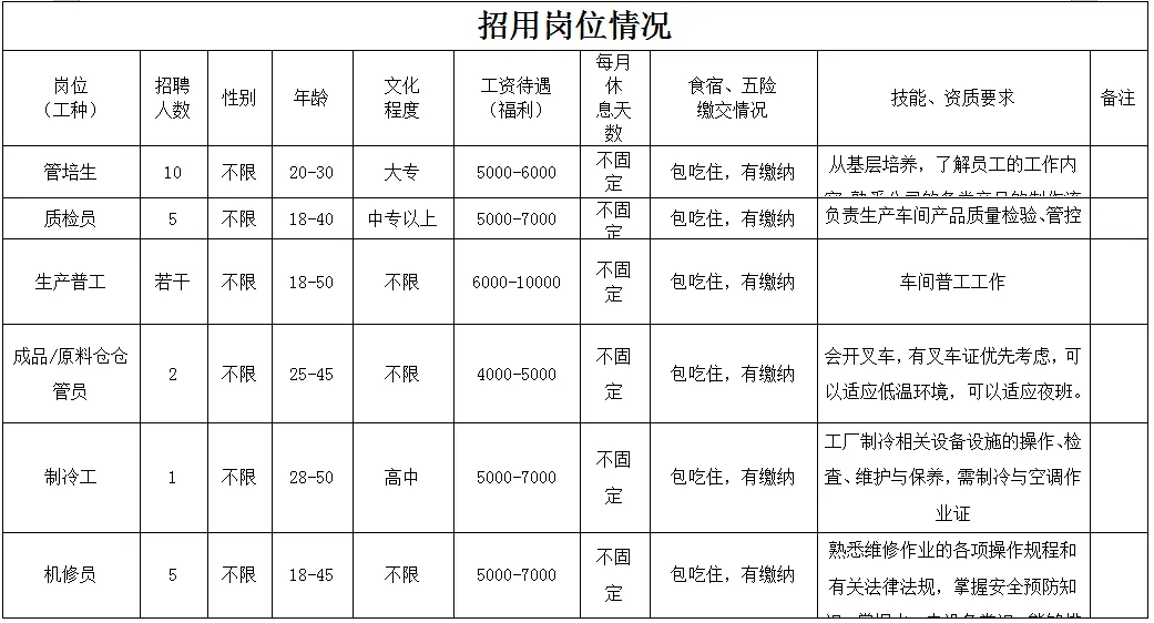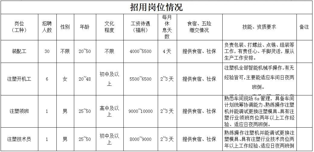 福利待遇:月工作26天满勤制,公司行政人员八小时工作制。一线员工两班倒,计件工资4500-7000元/月,工资每月按时发放。享有六险一金、免费体检、年终奖等福利。