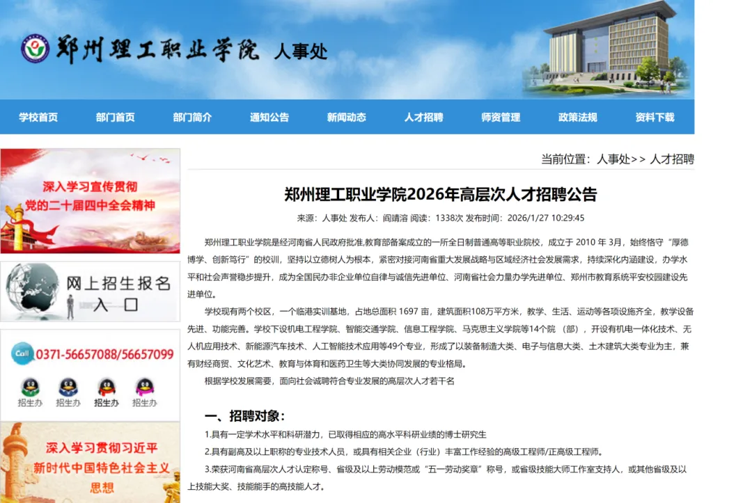3.招聘说明:全年招聘。若因其他原因而导致招聘信息变更,以郑州理工职业学院官网公告为准,应聘人员须特别关注。