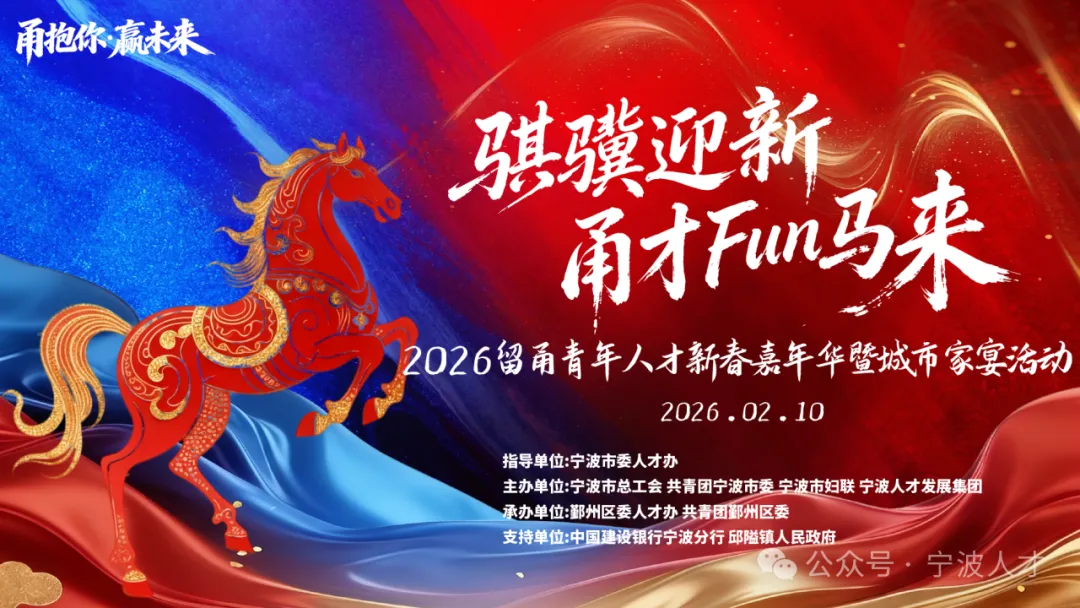 如果你也单身,请戳报名链接:抢位‼️共品年夜饭+青年交友+才艺展示,2026留甬青年人才新春嘉年华暨城市家宴活动缺个“你”,快冲冲冲~