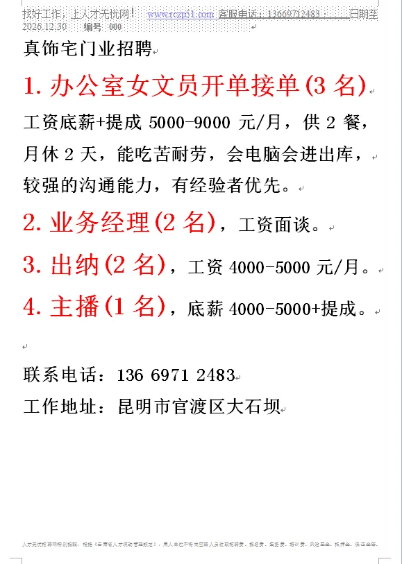 >真饰宅门业招聘