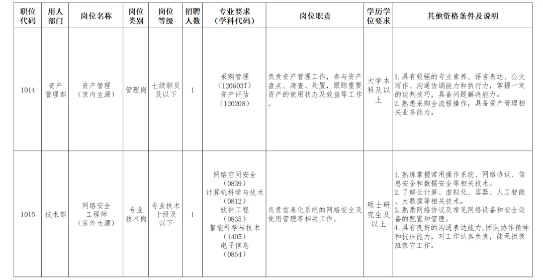 京内生源毕业生可报考符合条件的京外生源岗位。