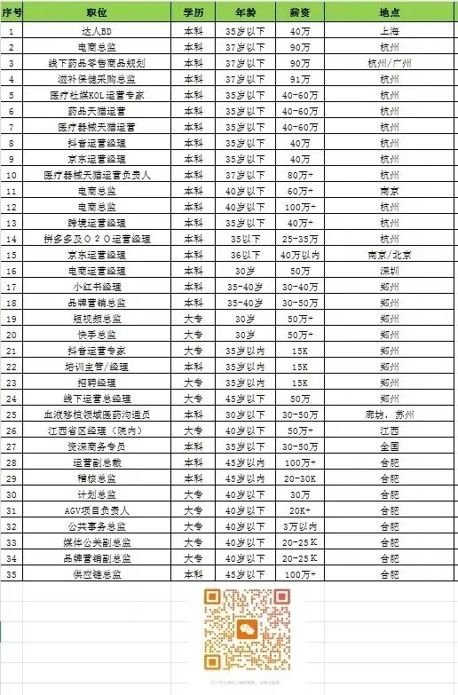 一周猎头职位更新 │35个医药大健康电商类职位