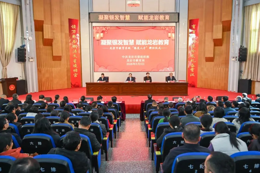 2月3日上午,龙岩市教育系统“银发人才”聘任仪式在龙岩一中举行。市委常委、组织部部长汪志红,市政府副市长修洪出席活动并为9名市教育系统首批“银发人才"颁发聘书。