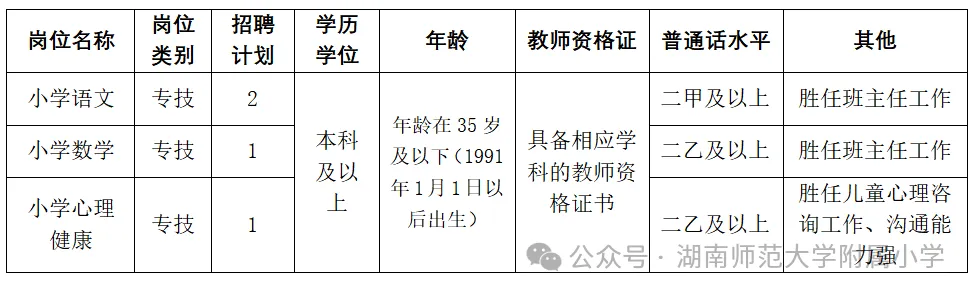 湖南师范大学附属小学始建于1953年,由湖南师范大学主办,文化底蕴深厚、校园环境优美,是长沙市首批示范性完全小学。学校师资实力雄厚,办学成绩卓著,是一所享誉三湘的优质基础教育品牌学校。为进一步优化教师结构,加强我校师资力量,附属小学现面向社会公开招聘非事业编制教师。具体公告如下:
