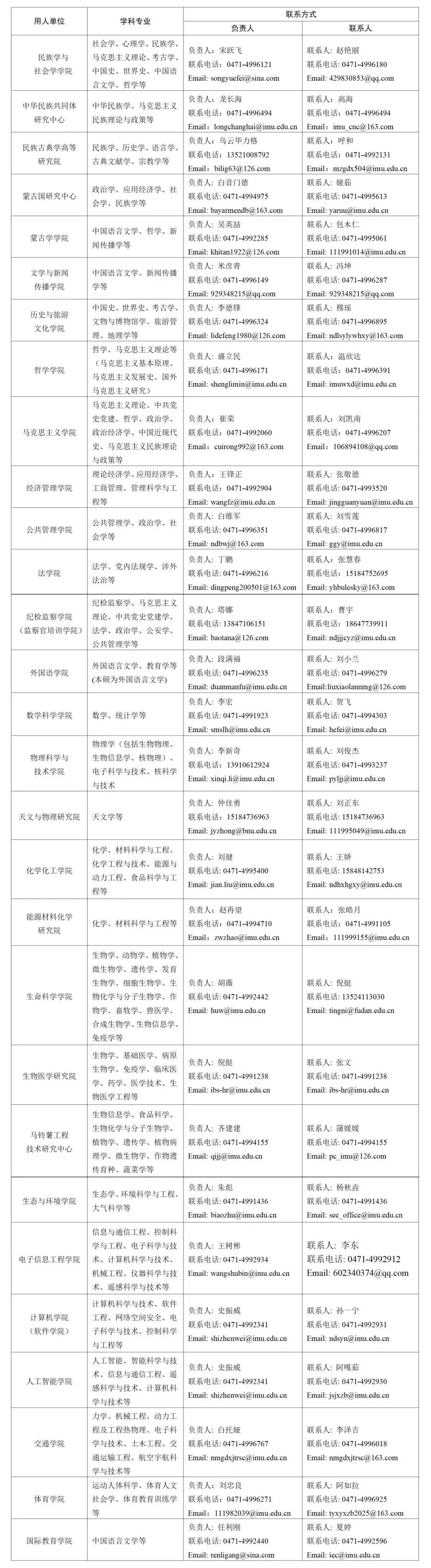 高层次人才招聘联系电话:0471-4993792(骏马计划) 0471-4992415(青年学术人才)