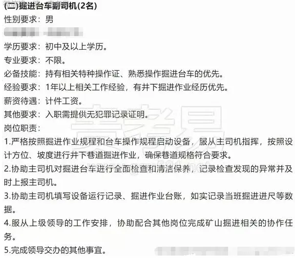经验要求:2年以上相关工作经验,有炮掘班组长经验的优先。