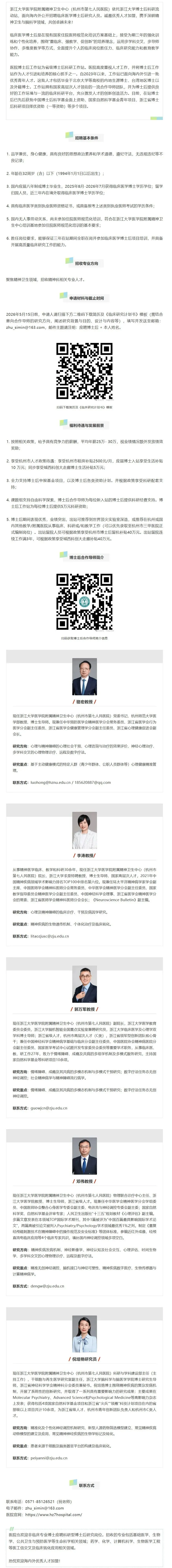 浙大精中(杭州七院)2026年度临床医学博士后招聘启事
