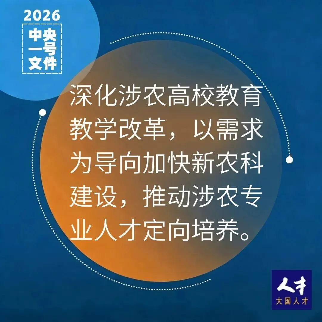 2026年中央一号文件来了!关于人才,这些内容值得关注!
