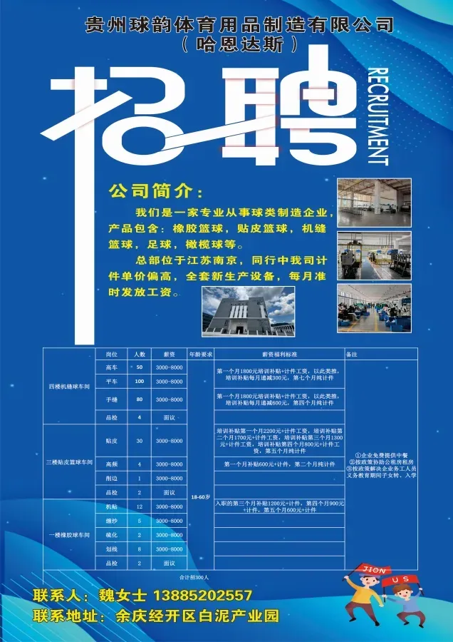 余庆三家优质企业联合放出390个岗位,涵盖烟花制造、体育用品生产、服装加工等多个领域,总有一个适合你👇