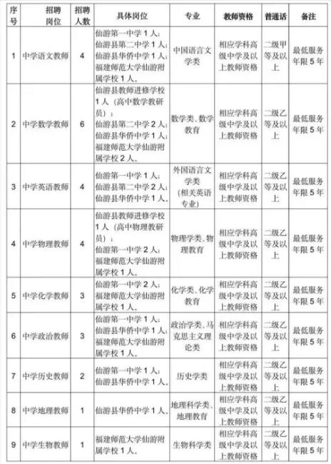 原标题:仙游县2026年考核招聘中学新任教师方案