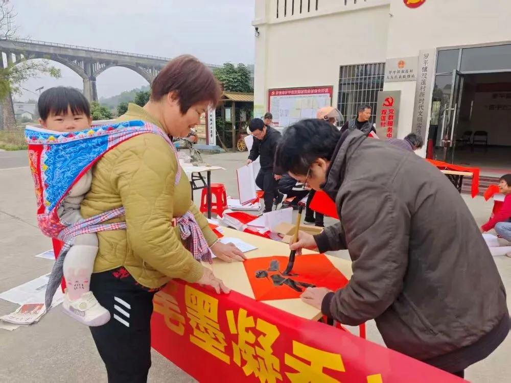 联合罗定市书法家协会邀请书法专家到双莲村下垌党群服务中心开展“笔墨凝香送祝福·春联暖心迎新年”送春联活动。