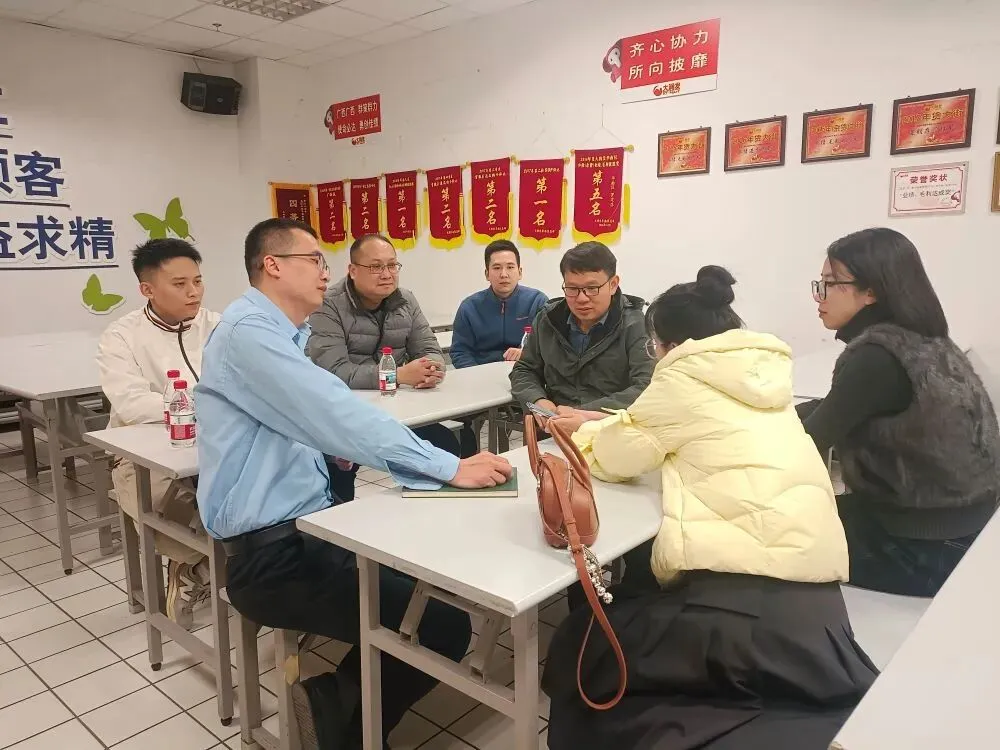 对接佛山市工业信息化局一行到苹塘镇秋田美肥业有限公司开展人才走访调研。