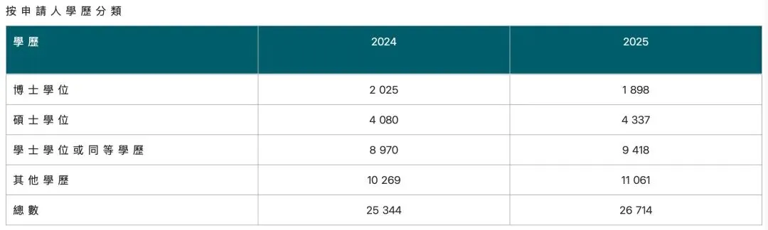 从人才的学历结构分析,合资格大学的硕士或者博士学位持有者占比达到62%,而与STEM学科相关的博士或硕士学位持有人员占比接近50%。 整体来判断,优秀人才的申请将变得更加困难。
