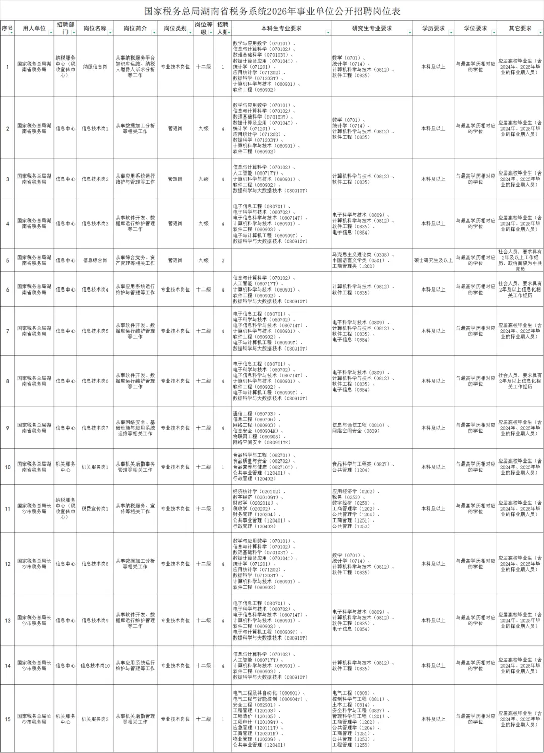 附件:1.国家税务总局湖南省税务系统2026年事业单位公开招聘岗位表