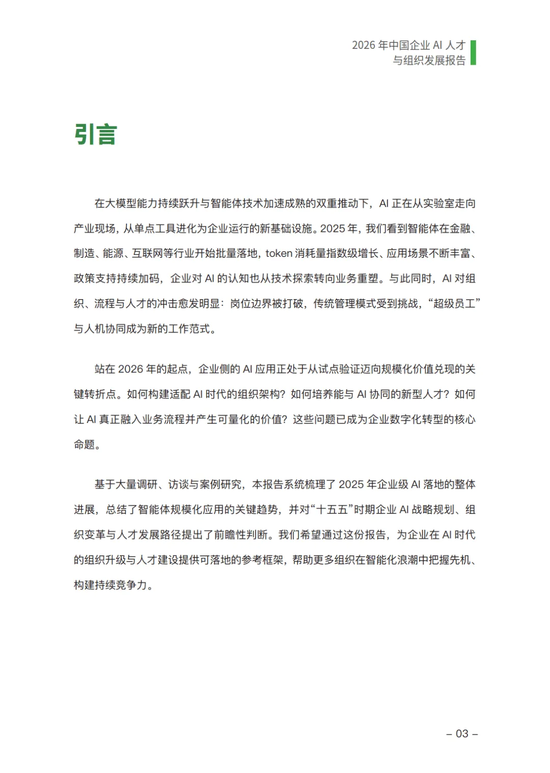 由于公众号资源有限,仅能展示部分少数报告,所有报告原文档均已上传到知识星球”速查报告库”中。加入星球即可无限次下载所有报告,在菜单点击获取报告可查看操作步骤。 客服微信:SCBGK666在大模型与智能体技术双重驱动下,AI 已成为企业新基础设施,2025 年智能体在金融、制造等多行业批量落地,2026 年企业 AI 应用正从试点验证迈向规模化价值兑现。本报告基于 1035 份有效调研样本,系统梳理行业现状与趋势,为企业转型提供参考。未完……更多详细请下载完整报告