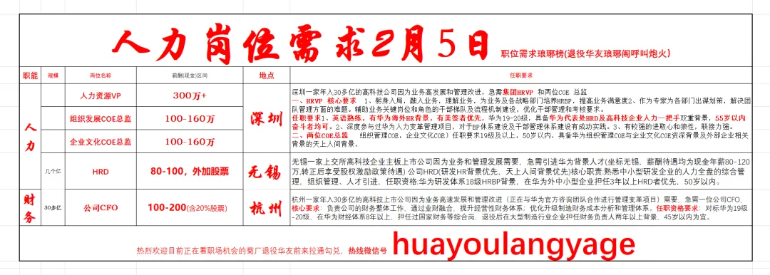 希望我司退役员工既具备华为先进管理经验又掌握如何适应大多数企业的生存技巧,职业生涯更加稳健些。