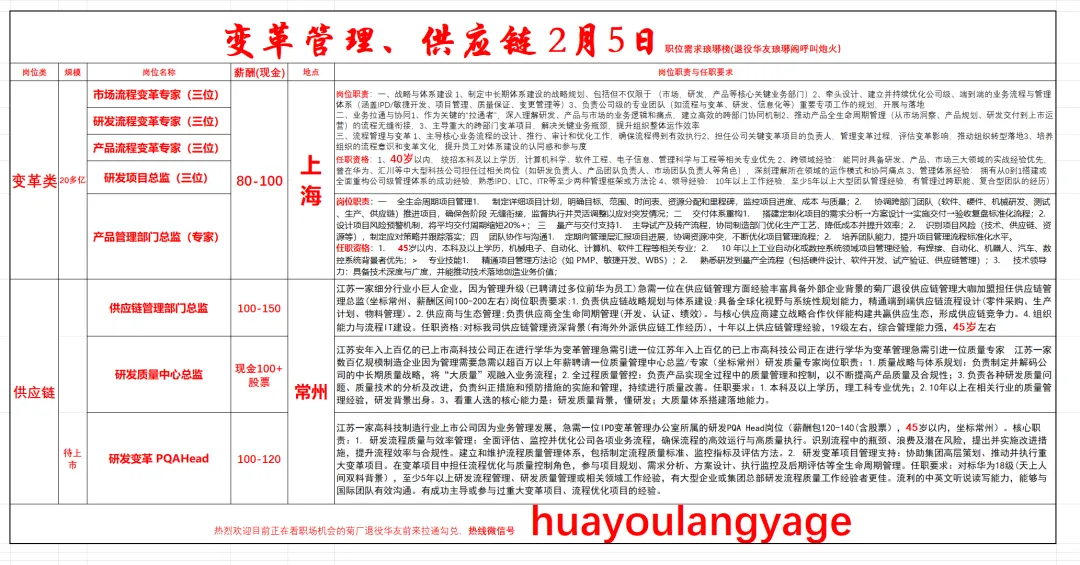 菊厂35号(退役华友琅琊阁)为退役华友准备好了符合人间客户需求的体现菊厂人世界五百强精英高管气质的专用简历模板(又分管理者版、专家版两个版本),欢迎联络华友琅琊阁接口人(微信号:huayoulangyage)免费获取。