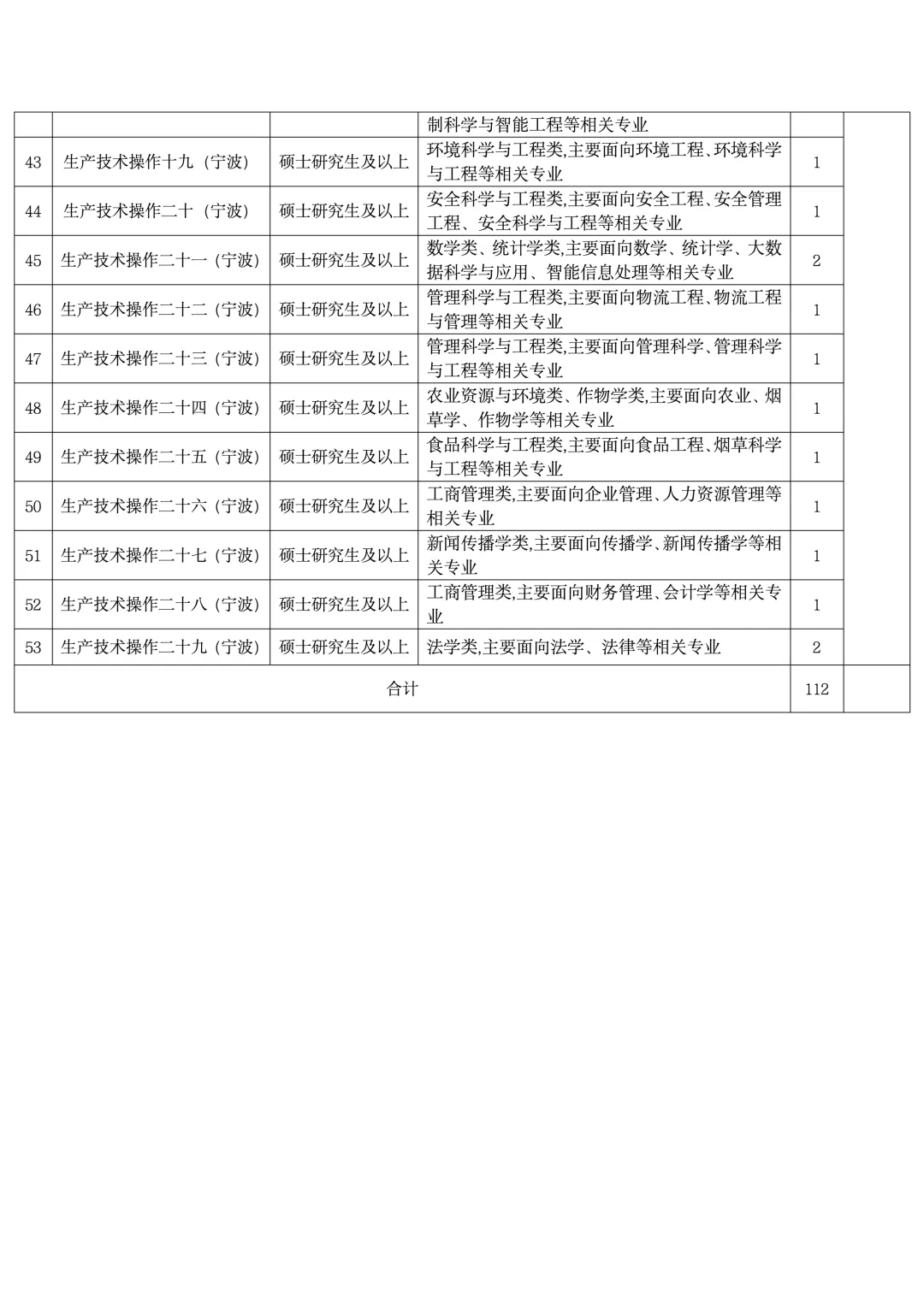 本次集中招聘53个岗位共112人,具体招聘岗位、人数和相关要求见《浙江中烟2026年集中招聘计划表》(附件1)。