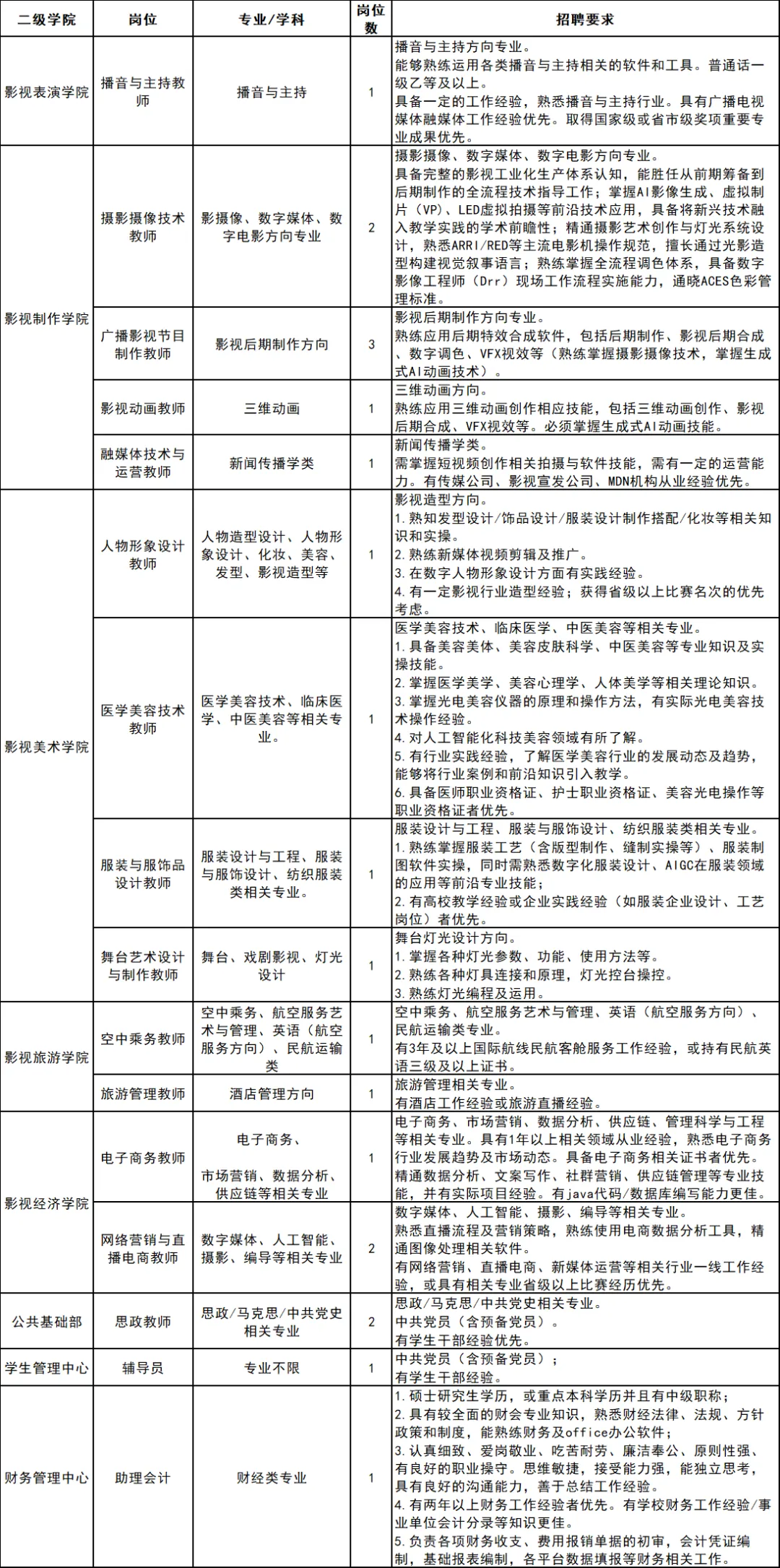 ①浙江横店影视职业学院招聘报名表(可通过我校官网-师资队伍-人才招聘模块下载)