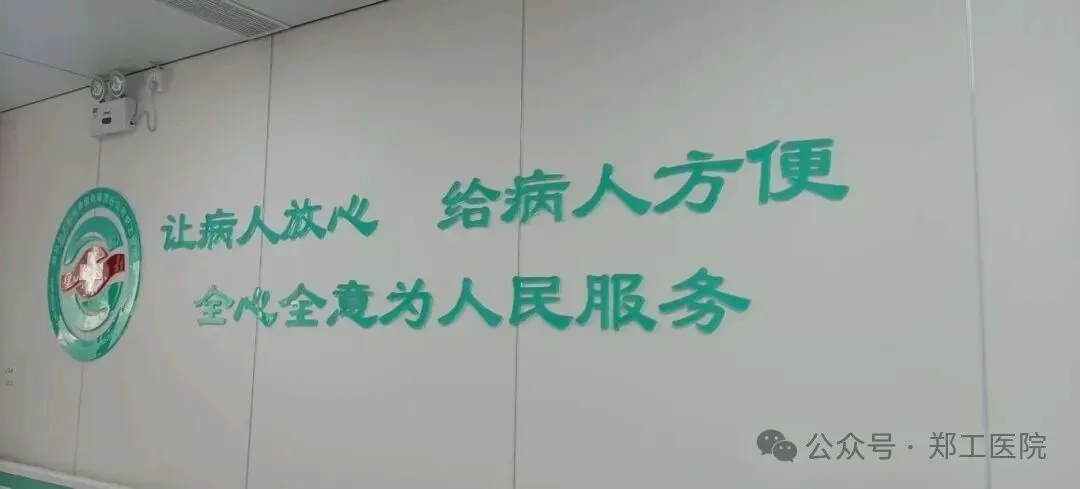 “郑工医院,健康相伴”。医院始终秉承“以员工为中心,以患者为中心”,“让病人放心,给病人方便”的服务理念,全心全意为患者服务,精益求精地为居民提供温馨、便捷、良好的有温度的医疗服务。
