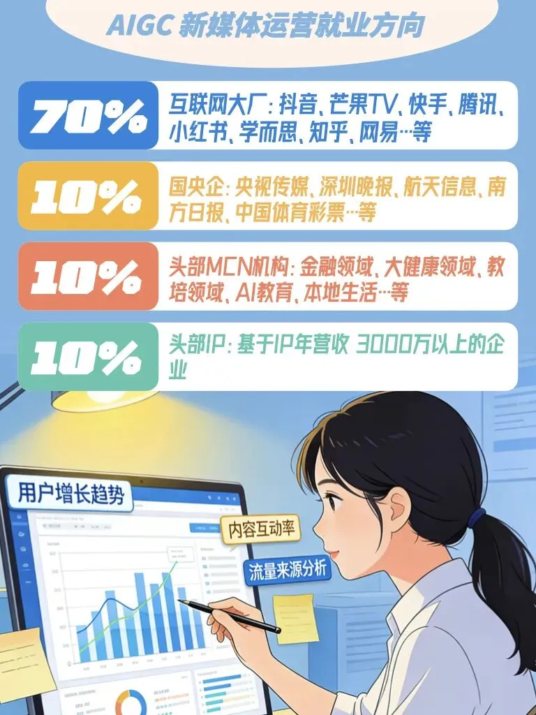 全媒体运营、AIGC创作者、AI社群运营、新媒体运营、全媒体运营、AI内容策划、AI合同审核、内容运营、AIGC内容生成师等