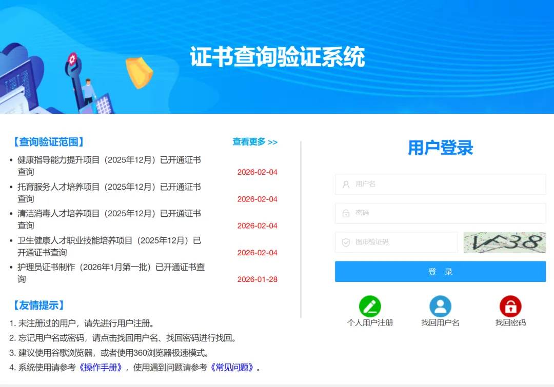 ※进入证书查询系统后,即可进行证书查看和证书下载