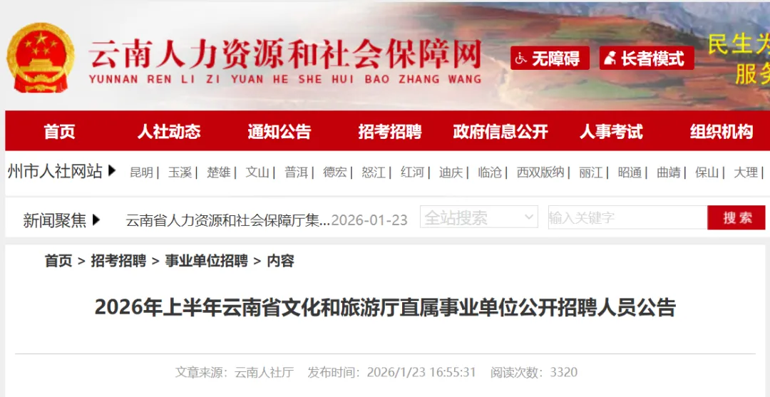 当前位置:首页>招聘>【招聘】云南省文化和旅游厅直属事业单位2026年上半年公开公告