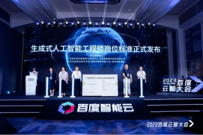 在人才认证与技能鉴定体系建设方面,为积极响应生成式人工智能技术快速发展和岗位能力要求,工业和信息化部教育与考试中心与百度公司开展深度合作,共同推出《生成式人工智能工程师职业技能等级标准》。该标准依托教考中心在标准研制与人才培养方面的理论研究及实践经验,结合百度在自然语言处理、图像识别、语音识别等领域的先进技术成果,科学划分为初级、中级、高级三个等级。百度智能云据此构建了系统化的培训课程体系,并为工信部教考中心提供权威的认证考试技术支持。