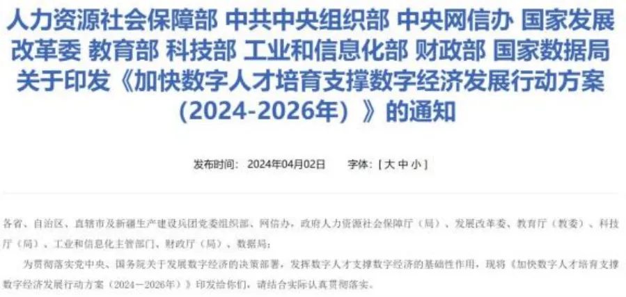 当前,AIGC技术正以前所未有的速度持续演进,应用场景已广泛覆盖电商、办公、广告设计、市场营销、程序设计等多个行业。随着人工智能与实体经济的深度融合,企业端对AIGC相关人才的需求日益迫切,预计将迎来新一轮高峰。2024年5月,国家数据局等九部门联合印发《三年行动方案》,进一步明确了数字人才“育引留用”的战略框架,为产业人才发展指明了方向。