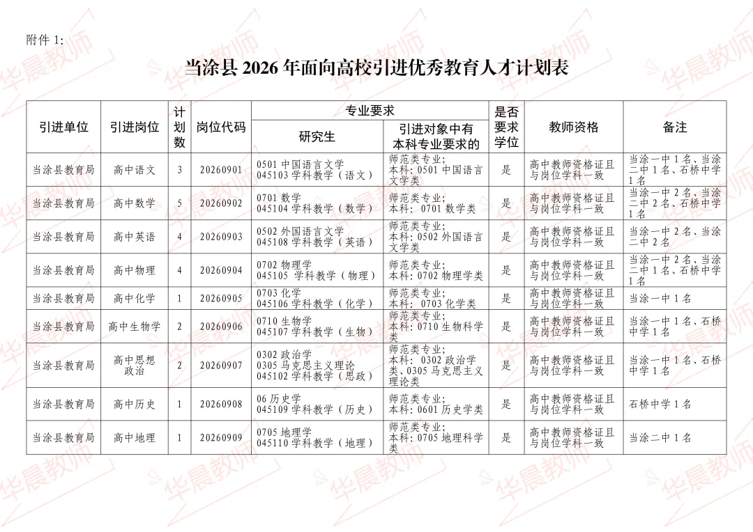 附件1:当涂县2026年面向高校引进优秀教育人才计划表.pdf