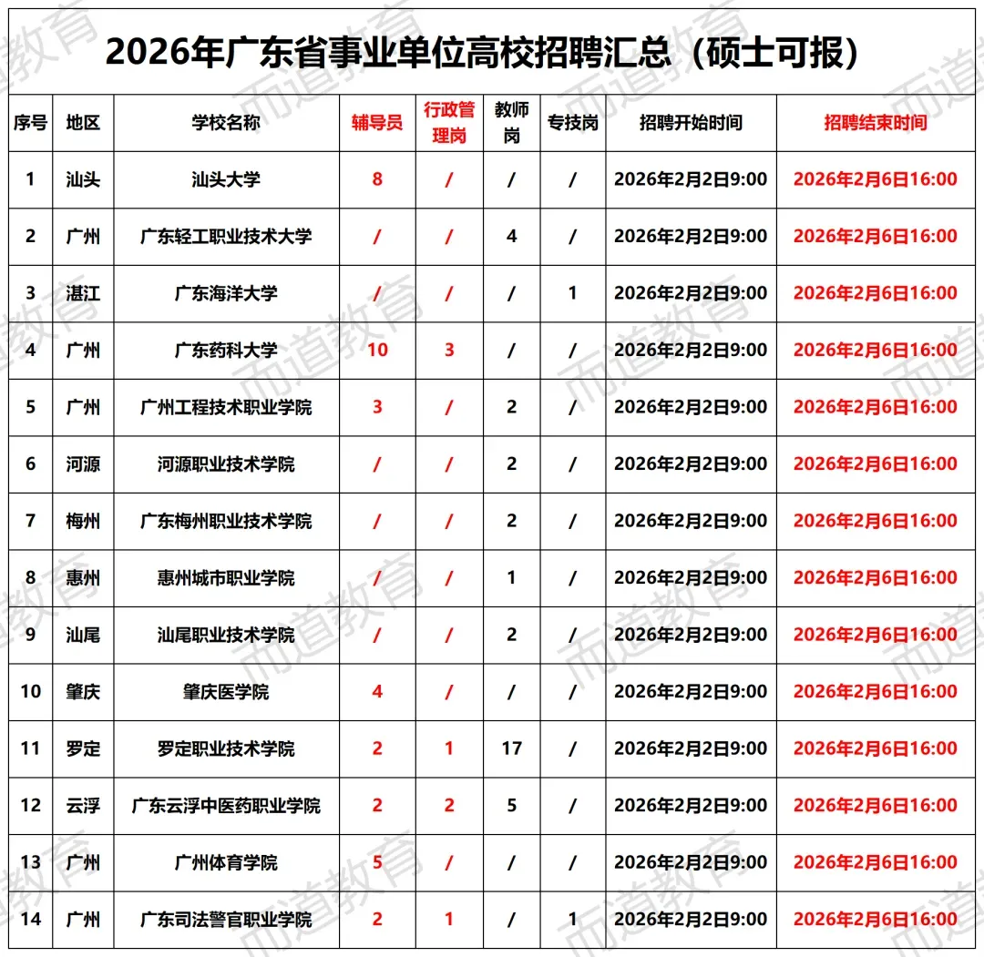 广东省事业单位2026年集中公开招聘高校毕业生公告