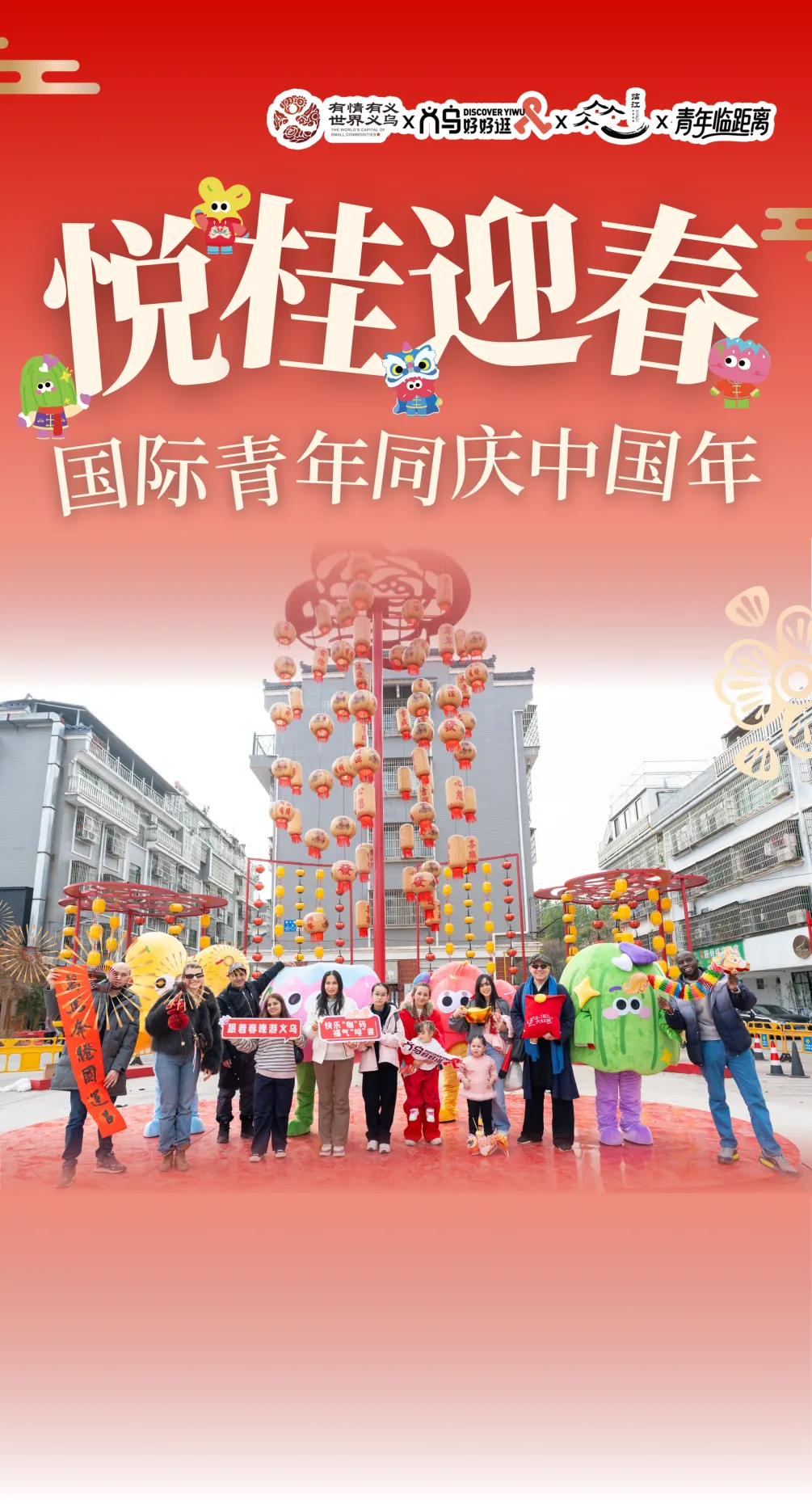 国际青年们背着福禄寿喜财主题气模,在十米高的灯笼架下摆出各式灵动造型打卡拍照。江东里国际人才服务中心四大IP惊喜现身,四大IP的毛绒造型瞬间圈粉,青年们纷纷上前牵手互动、合影留念,欢声笑语此起彼伏,江东里国际人才服务中心以趣味形式传递中式年俗魅力,在互动中拉近中外青年距离,为新春注入了别样的国际化温情与活力。