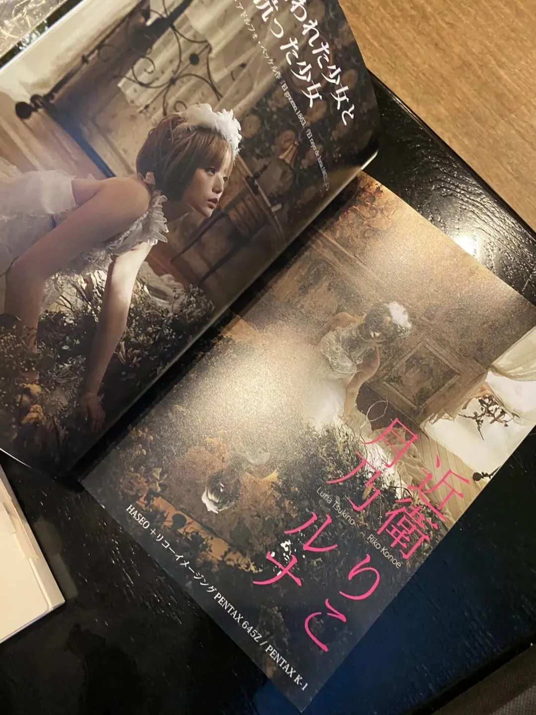 在吉高宁宁的第一次线下见面会上……原本准备作为猜拳比赛奖品的杂志,是吉高宁宁在月刊杂志的初登场……结果发现封面和彩页都是月乃露娜,于是直接带回办公室了。