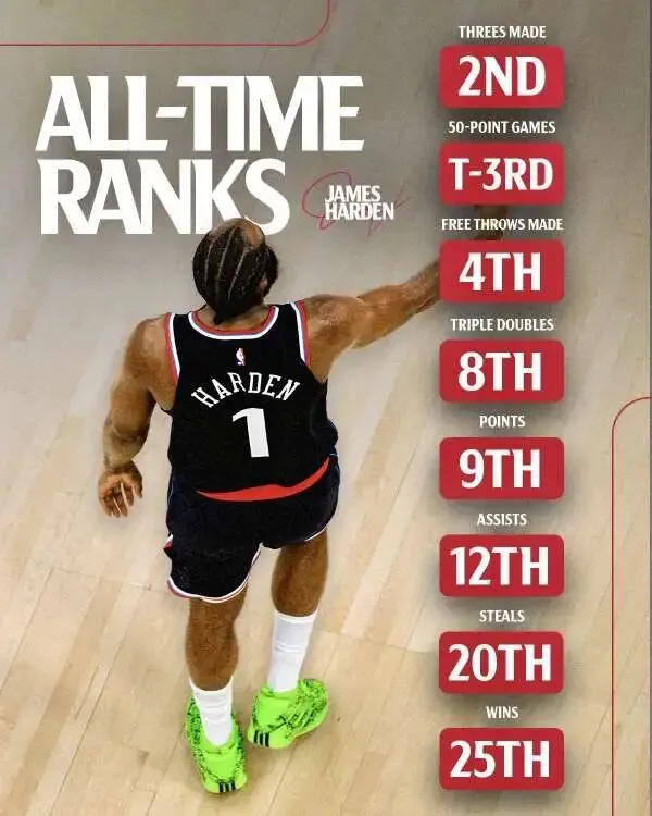离开休斯顿后,哈登开启了一段令人唏嘘的“职场流浪记”:在篮网拼掉健康,在 76 人被迫背锅,在快船成为洛杉矶永远的配角。