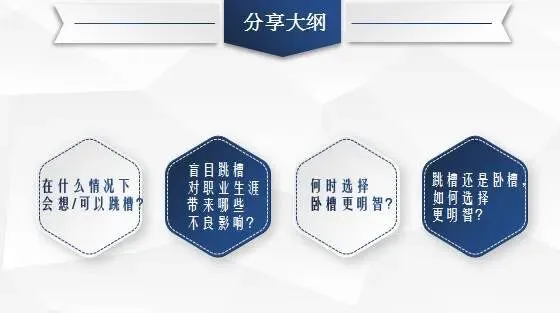 1.跳槽穷半年,转行穷三年,为什么那么讲呢?如果你去换到一个新的行业或者是新的一个职能,那你以往职业生涯中好不容易沉淀下来的职场的能量就会很大程度上丧失掉。