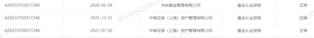 近日,证券从业系统显示,孙XX,12月31日从中泰证券资管公司离任,2月4日正式加入华安基金