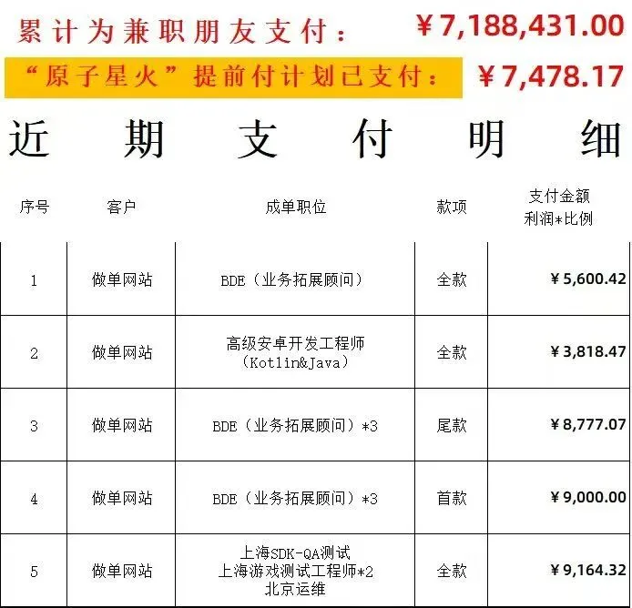上周给兼职猎头分配后累计完成718万费用支付,2026年兼职猎头招募中,欢迎大家来合作,也欢迎您介绍朋友们来合作。