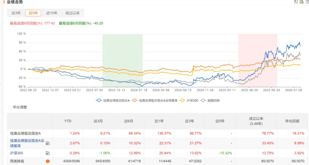 78.77%,折合年化18.3%,其中超额主要是2025年,当年度收益率为143%。
